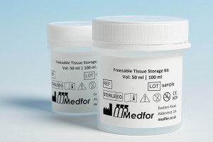 | S400-K | Hvid plastik beholder med hvidt plombebart skruelåg (300/500 ml) | Æske m. 10 stk. | Knogle - Femur hoved |