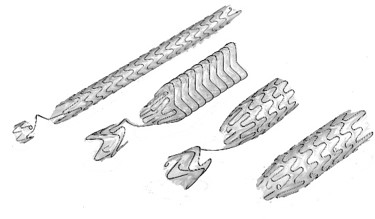 - Stenten er selvekspanderende med røntgenfaste markeringer, så den kan placeres ved en simpel endoskopisk procedure med guidens af både det endoskopiske billede og fluoroskopi.